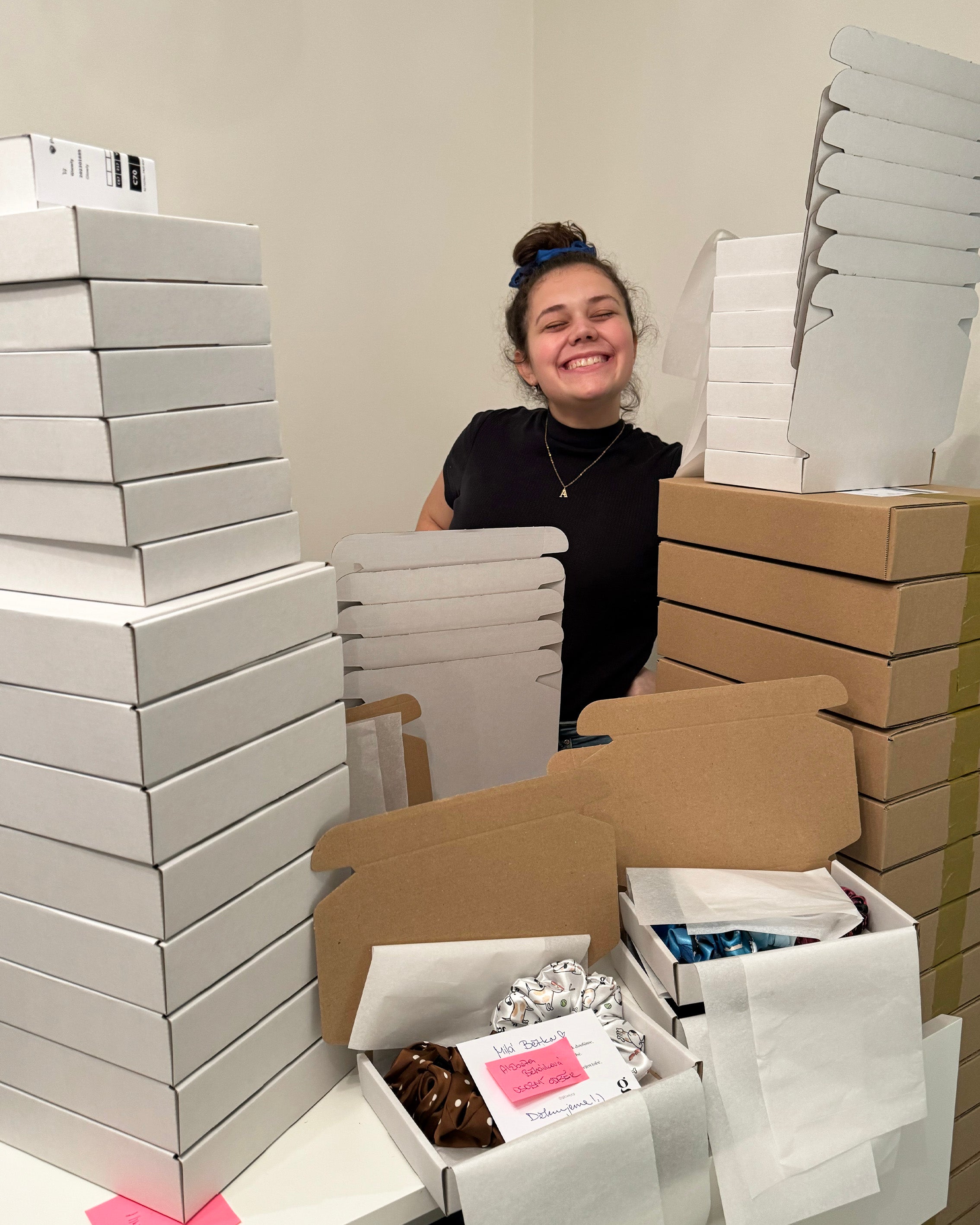Chtěla jsem jen kvalitní gumičku, která konečně udrží mé vlasy. Neuměla jsem šít ani navrhovat vzory. I přesto jsem se ale rozhodla vyzkoušet mamčin šicí stroj a vyrobit svoji úplně první gumičku. Mým cílem bylo hlavně ušít funkční výrobek a doufat, že mi někdo dá svoji důvěru. Dodnes si pamatuju den i svoji první zákaznici a radost, kterou jsem měla, když mi objednávka přišla. Štěstí z toho, že někdo dal své tvrdě vydělané peníze za můj produkt mě pohání dodnes.