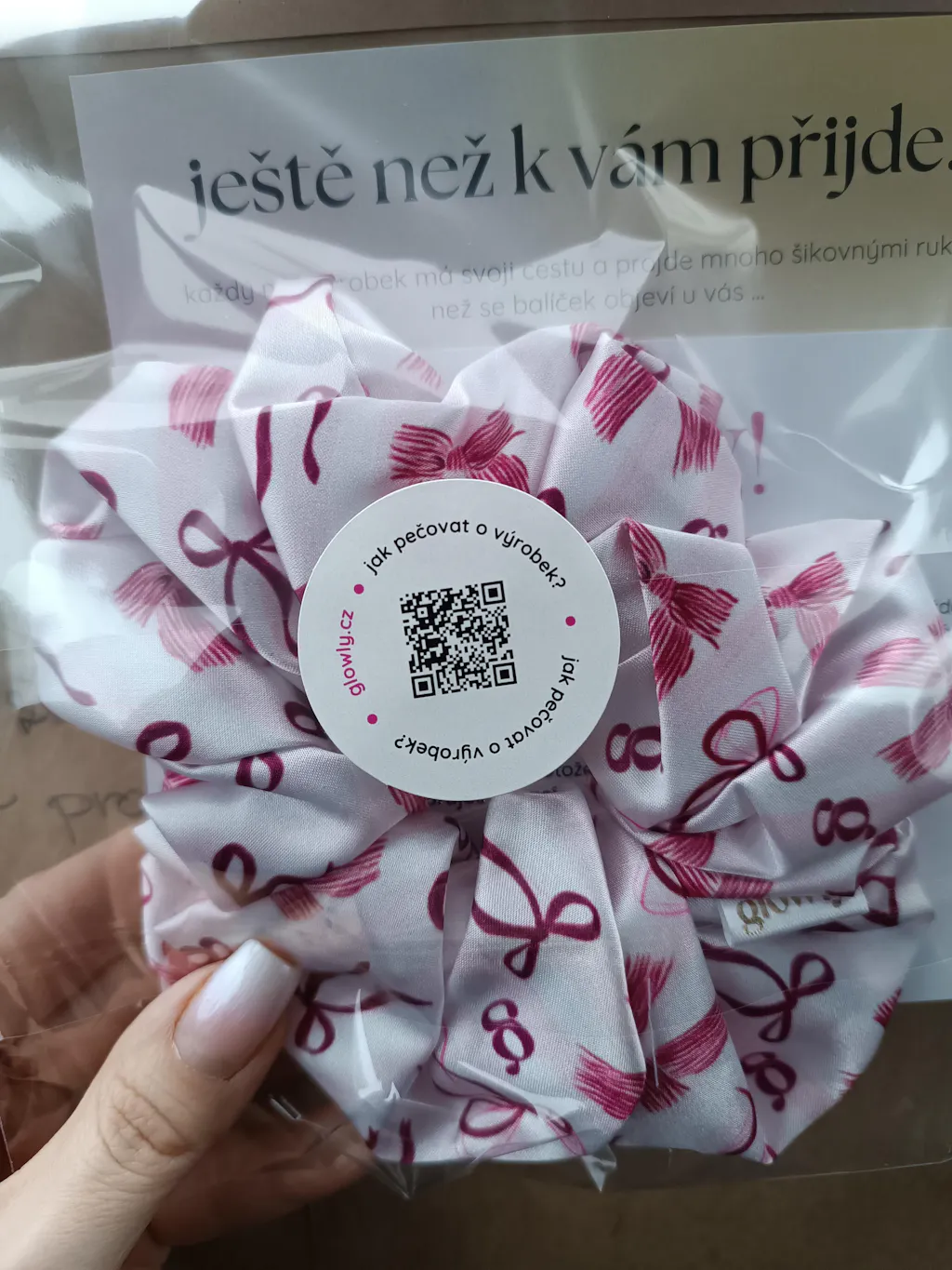 Rozkošná růžová gumička do vlasů s veselým motivem mašliček. Tato scrunchie pevně drží ve vlasech na dvě obtočení a přináší do každého účesu dávku hravosti a ženskosti. Je součástí kolekce Valentýn 2025. Mašličky jste si vy, naše milované zákaznice, odhlasovaly na našem Instagramu.
